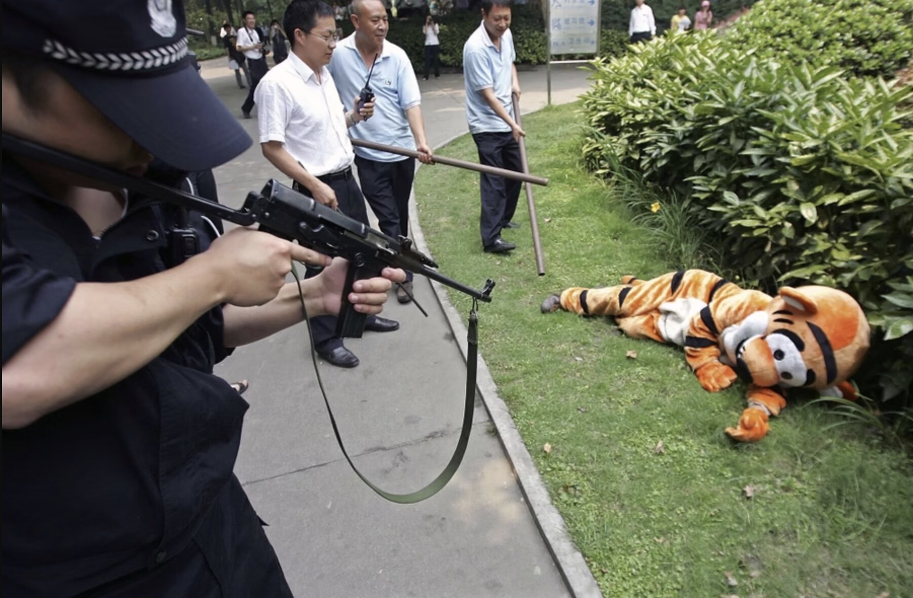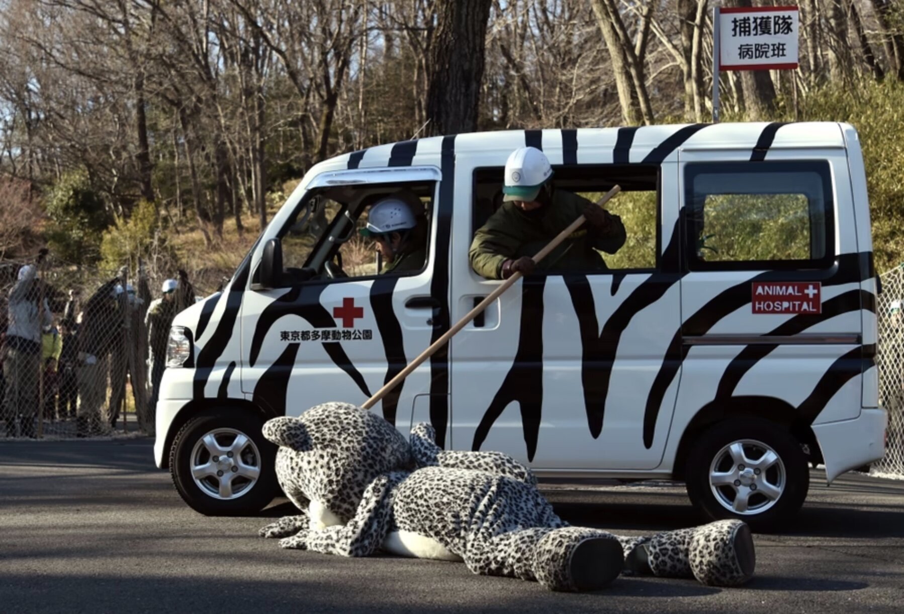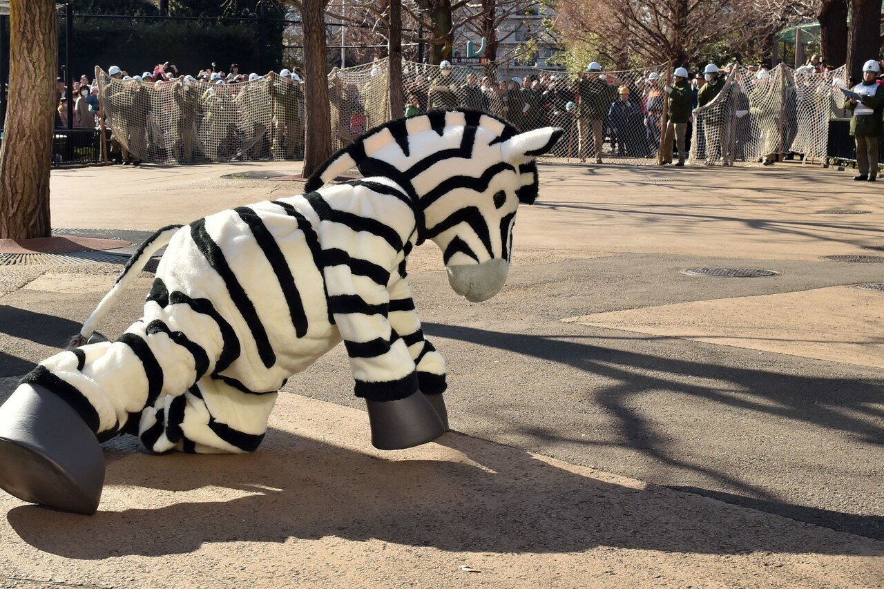 Некоторые зоопарки, в основном в Японии и Китае, разработали гениальную систему, которая позволяет сотрудникам знать, что делать в случае побега животного. Они просто наряжают человека в костюм животного и гоняются за ним с сетями и дротиками, пока он бегает по территории.